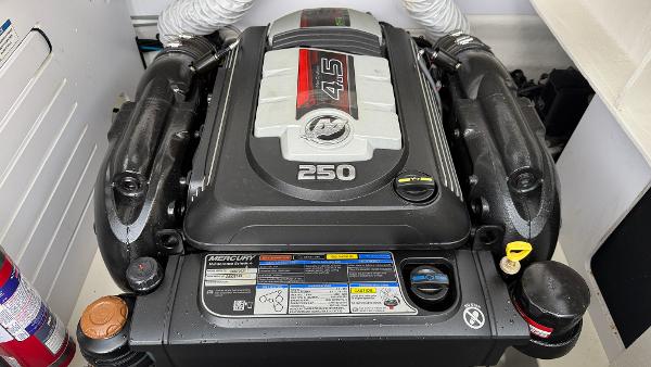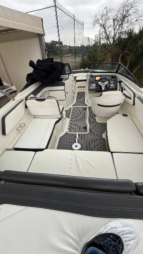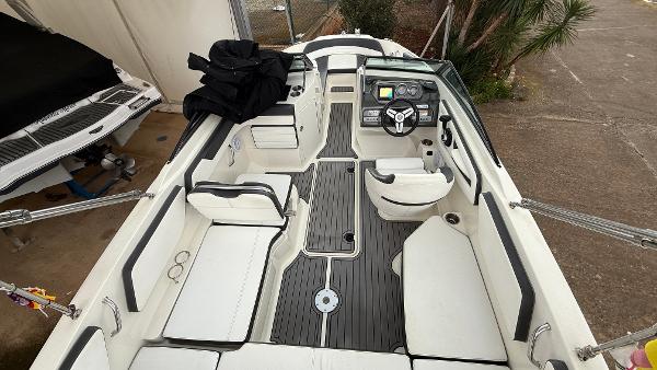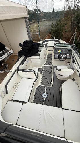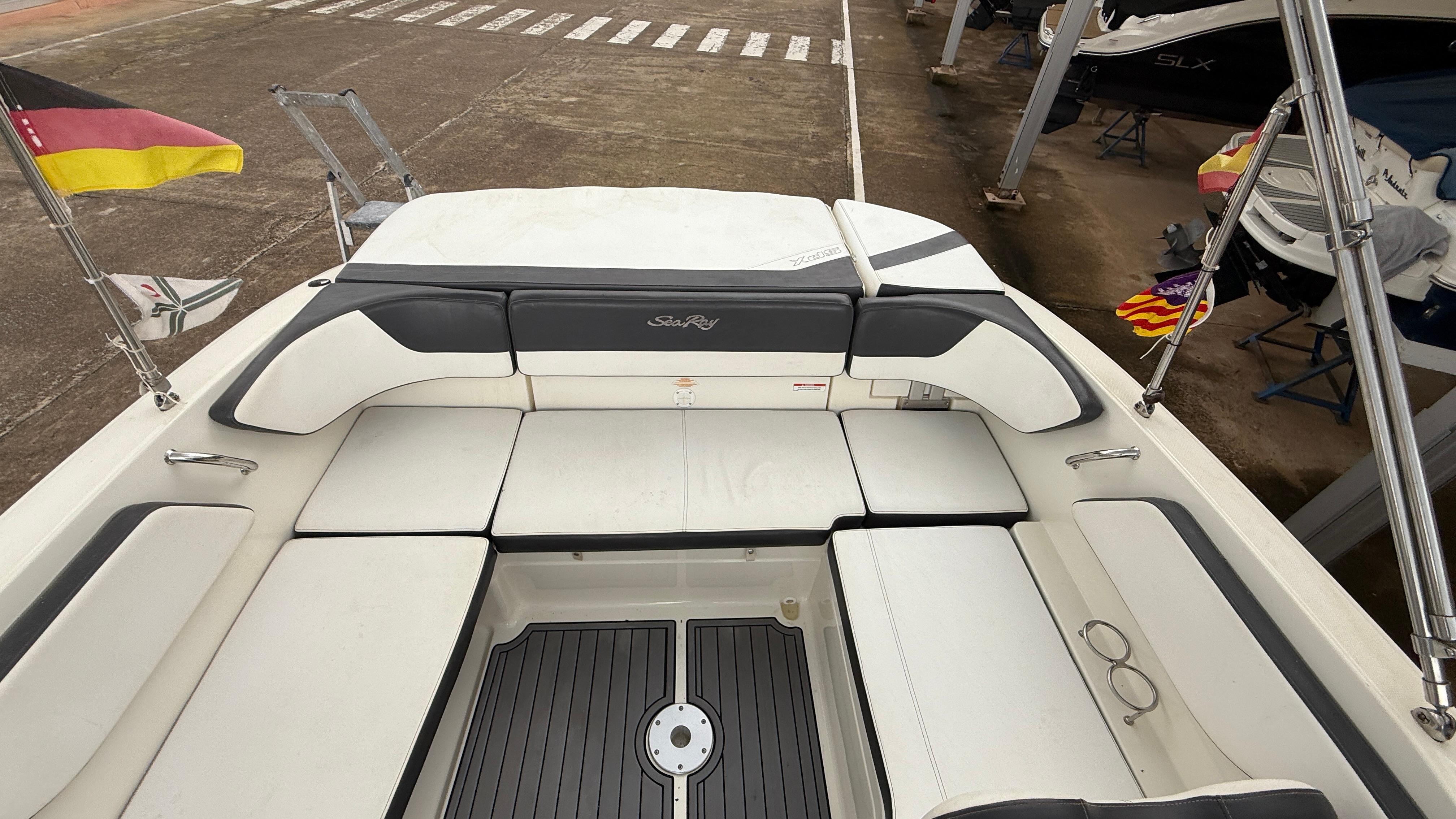☛ Description in ENGLISH: Sea Ray 210 SPXE from 2018 with a MerCruiser 4.5L MPI ECT Alpha I engine, with 250HP and 198 running hours. Bow seating in V with filler cushions and backrest for walk-thru to cockpit. Bucket seat for pilot and a lounger with adjustable Backrest for companion. L-shaped starboard seating with backrest and filler cushions for walk-thru. Portside access to swim platform. Spacious aft solarium with convertible backrest and swim platform with concealed ladder.