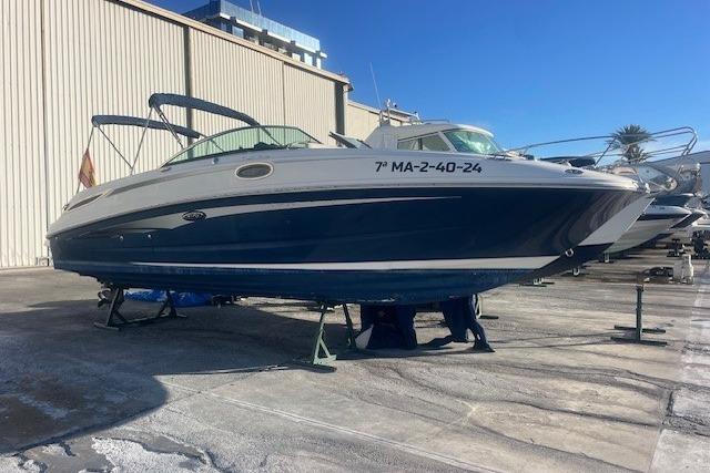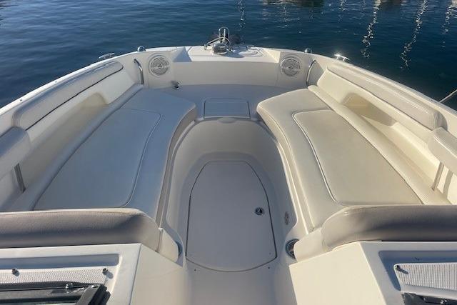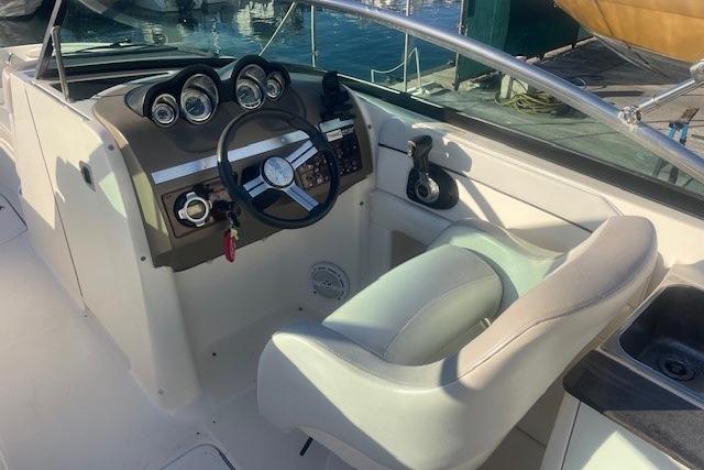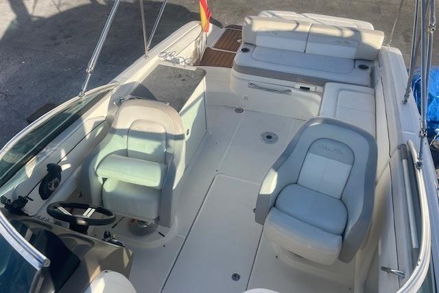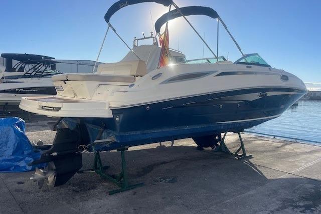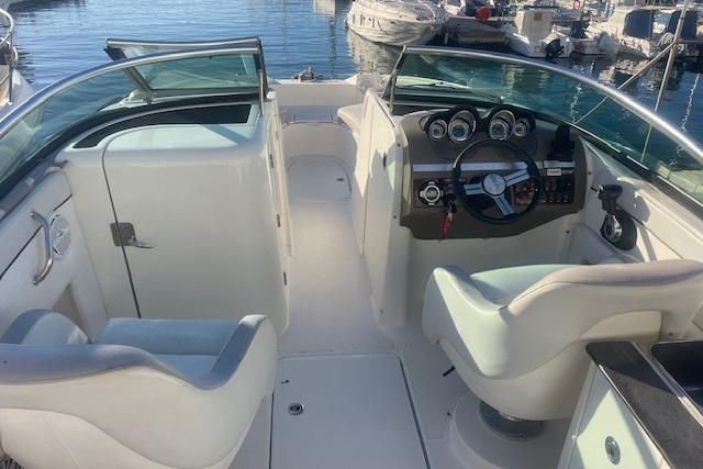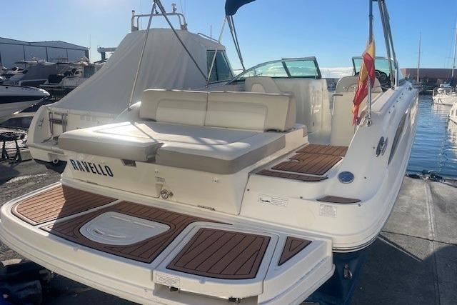 Introducing the stunning 2012 Sea Ray 280 Sundeck, a remarkable bowrider that combines elegance with performance. With an overall length of 8.53 meters, this vessel boasts a sleek fiberglass hull designed in a deep vee shape, ensuring a smooth ride across the water. Powered by a robust MerCruiser 8.2 Magnum DTS Bravo III engine, delivering an impressive 380 horsepower, it reaches cruising speeds of 32 knots and a maximum hull speed of 40 knots, making it perfect for thrilling adventures. Designed for comfort and convenience, the 280 Sundeck accommodates up to 10 passengers, making it ideal for gatherings on the water. It features an electric windlass for effortless anchoring, enhancing your boating experience. With a range of 100 kilometers, this boat is ready for extended outings. The combination of its stylish design and powerful performance makes the Sea Ray 280 Sundeck a standout choice for any boating enthusiast.