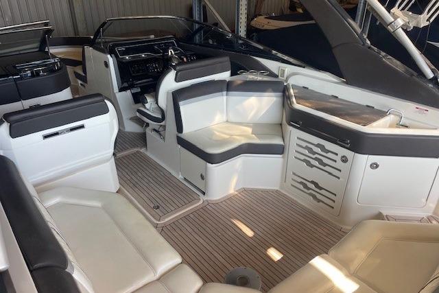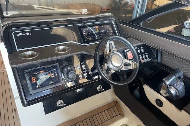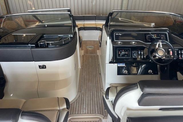 Sea Ray 310 SLX, 2017 model with two Mercruiser engines 6.2L MPI DTS ECT Bravo III & 300 HP each.Bow rider w/ bow cushions in V. Port head compartment. Two dual bucket seats w/slider, flip-up & thigh rise bolster. The companion dual bucket seat w/swivel & slider. The helm dual bucket seat w/ footrest. Cockpit table, wet bar & aft seating in L. Walk-thru transom. Wide aft sun lounger & swim platform w/ ladder.